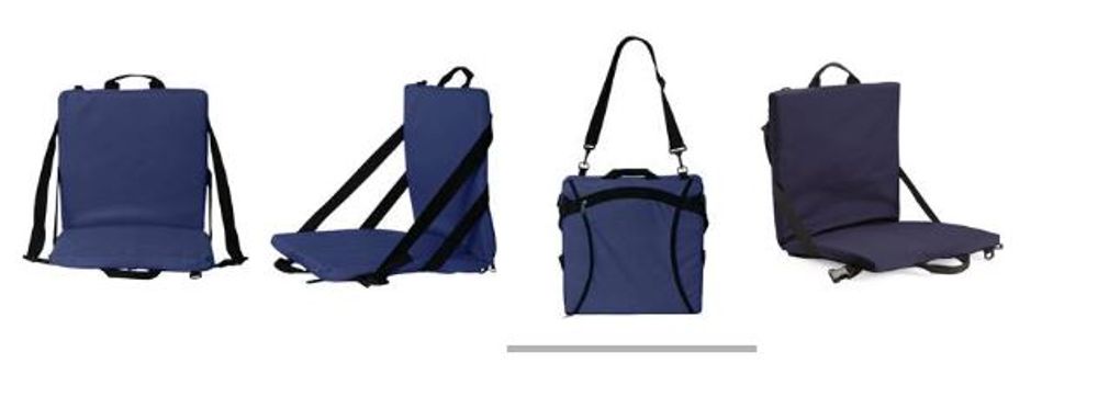 Bag will be embroidered with logo. 600-denier polyester; Comfortable stadium seat with adjustable side buckle straps for comfort; Elastic band to secure to bleachers; Back panel with zippered pocket for quick storage; Double carrying handles, adjustable, detachable shoulder straps for easy and comfortable carrying; Requires California Prop 65 Warning Label; Each year 5% of Net Operating Income is given to help support a host of social service organizations supporting the homeless, children and veterans and in need.